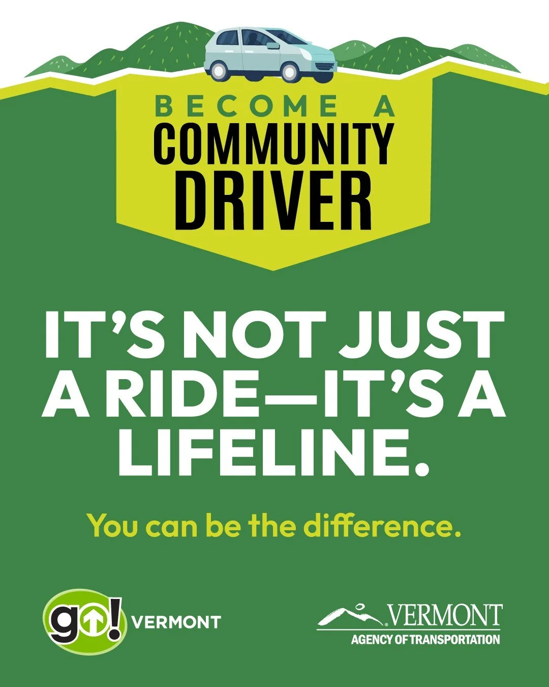 Volunteer community drivers provide the valuable service of assisting with transportation needs of individuals who require transportation to appointments. As a volunteer driver, mileage is reimbursed at the current GSA mileage rate. Contact us at 802-878-1527 for more information.